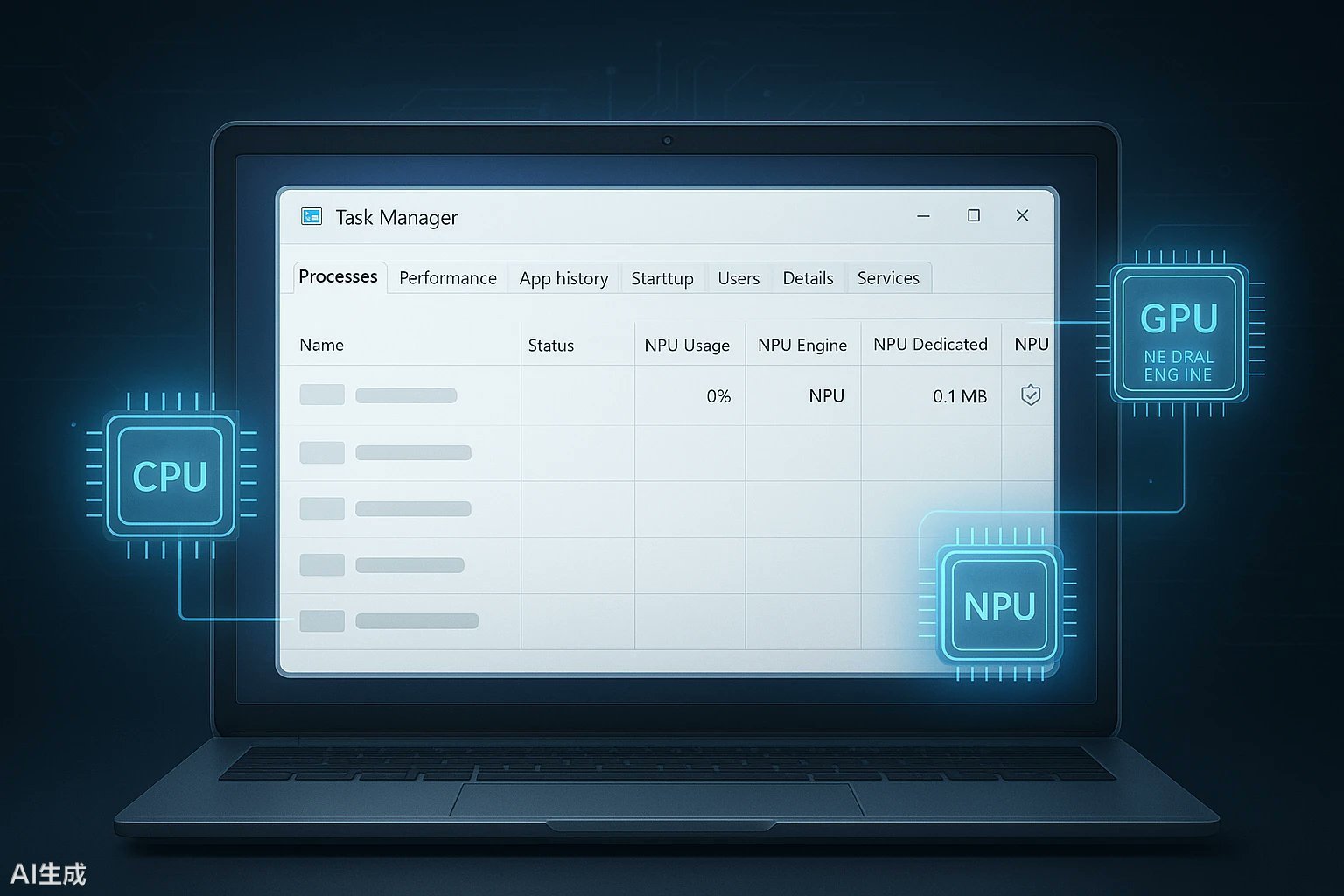 用户现在可以在“进程”标签页中调出“NPU 使用率”和“NPU 引擎”列,从而一目了然地按负载高低排序进程,精准揪出正在疯狂调用 AI 算力的后台程序。